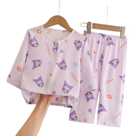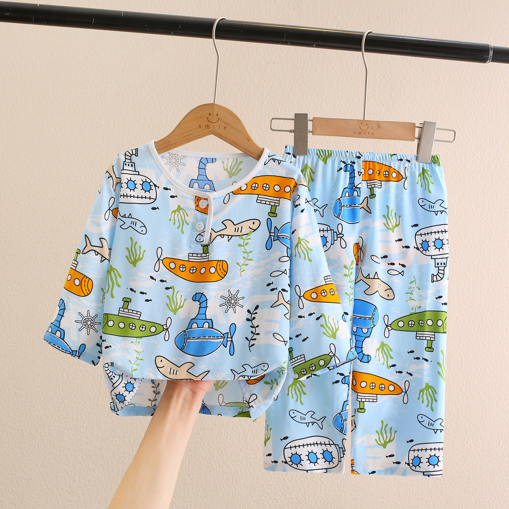 Kids Cotton Silk Pajamas Set – Long Sleeve Summer Homewear