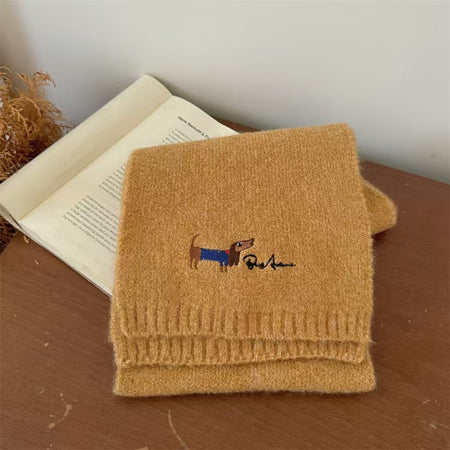 Crafted from high-quality wool 🧵✨, this scarf provides excellent insulation while remaining soft and gentle on delicate skin. The Japanese-style embroidered puppy adds a cute and charming detail, enhancing the scarf’s appeal for boys and girls 🌟. Its versatile design allows easy pairing with jackets 🧥, sweaters 🧶, and coats, making it a practical and stylish accessory for everyday wear.