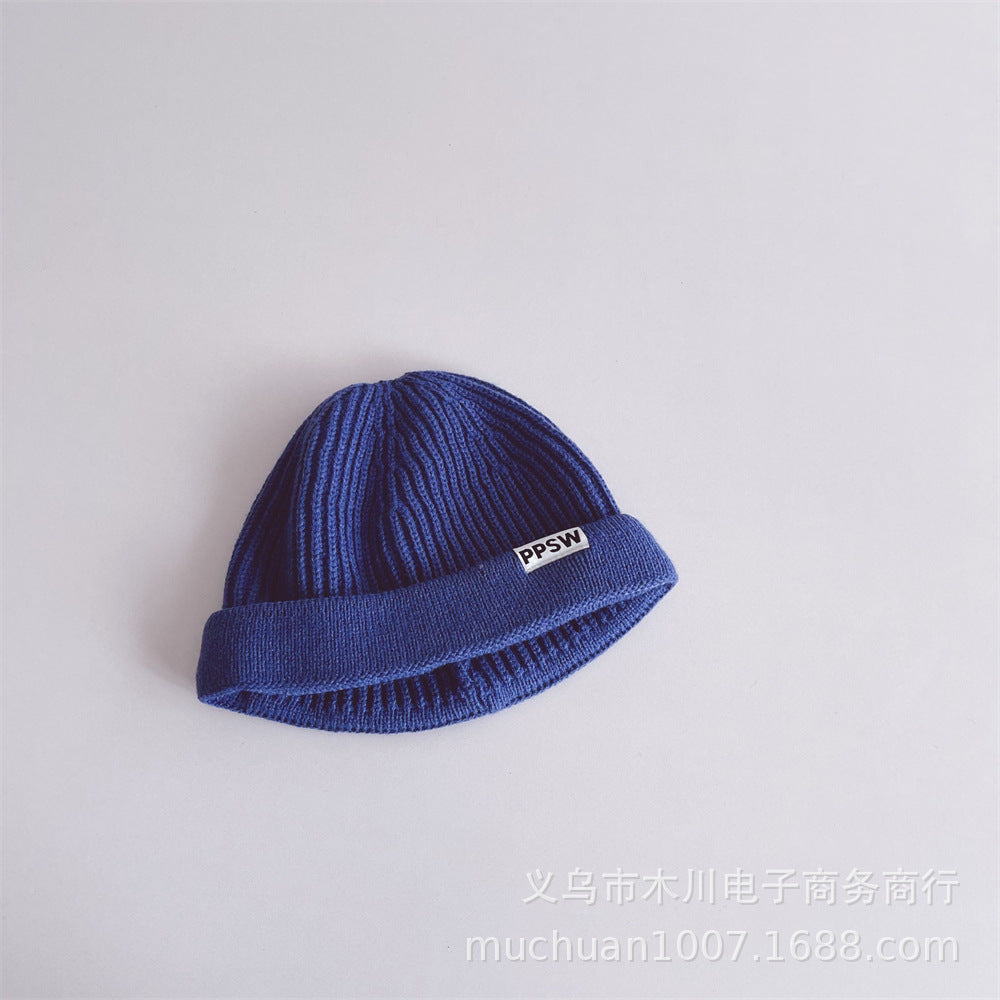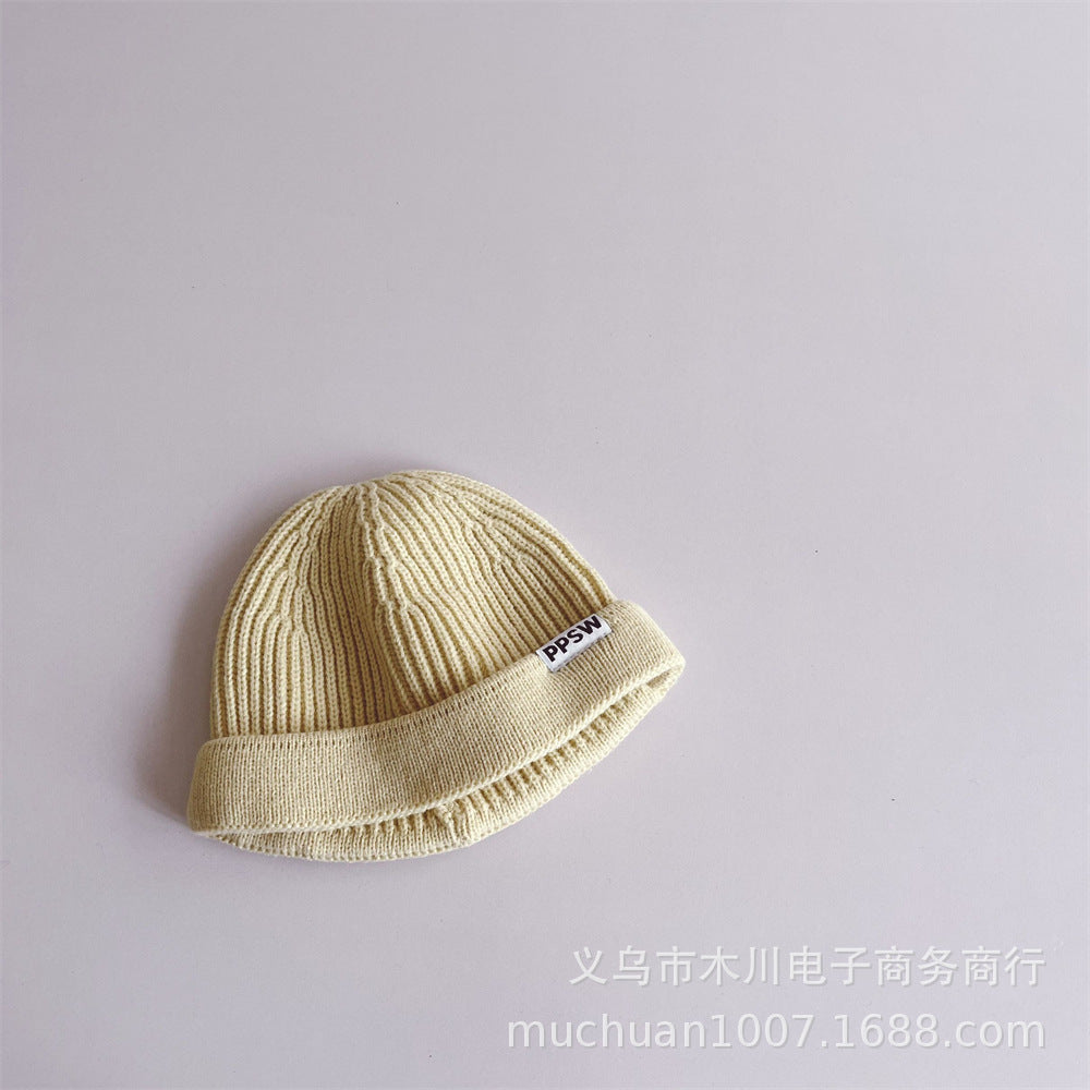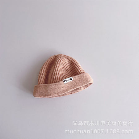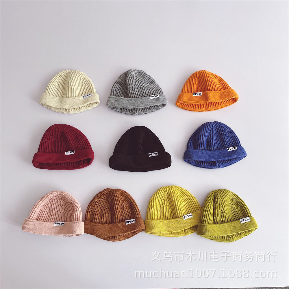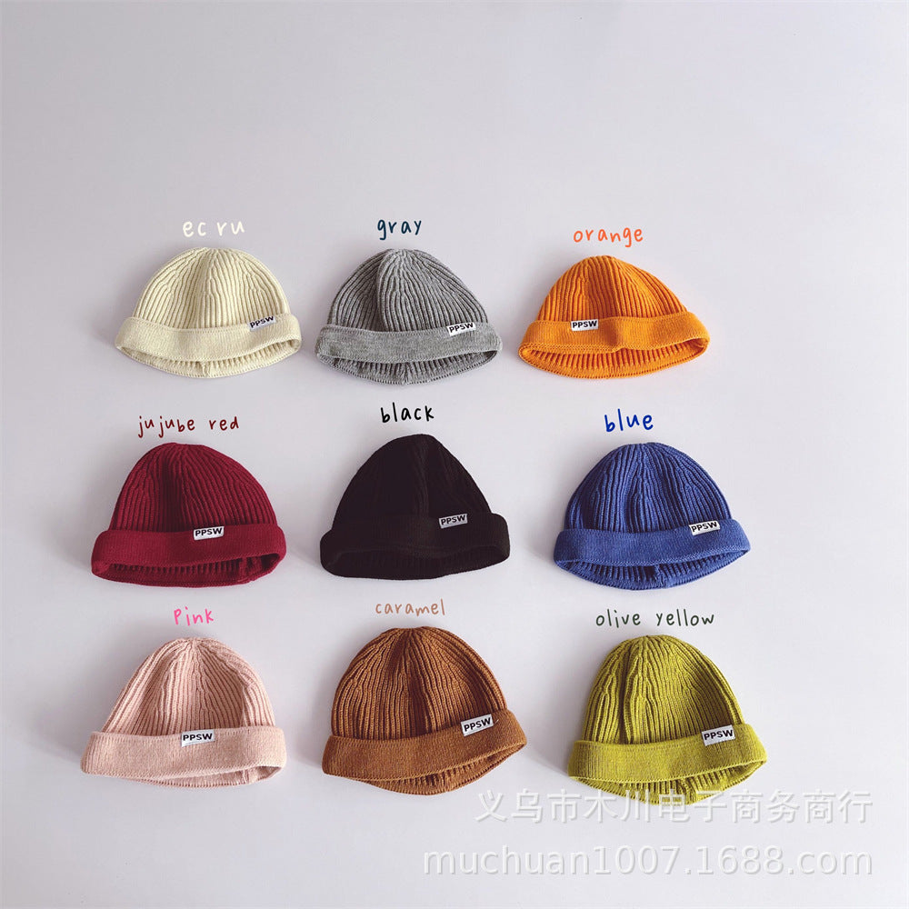 Kids’ Japanese-Style Knitted Melon Hat – Solid Color Wool Dome Beanie