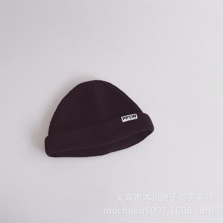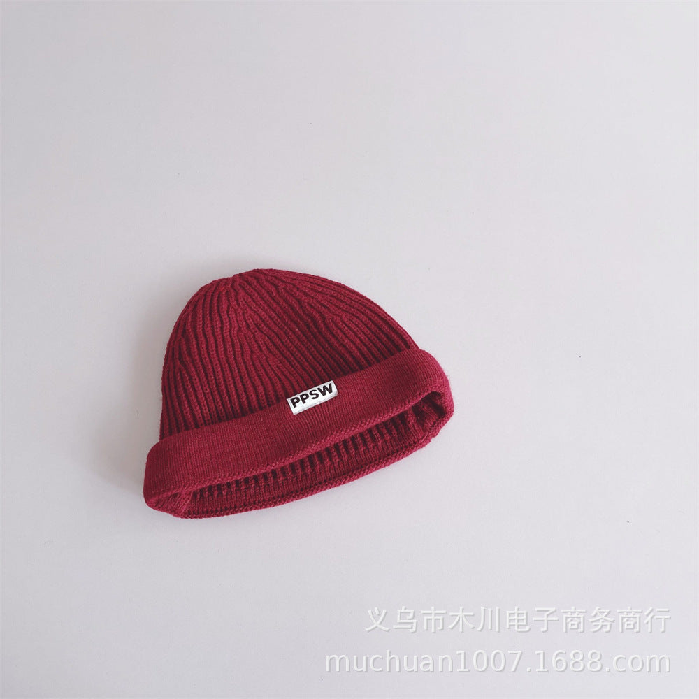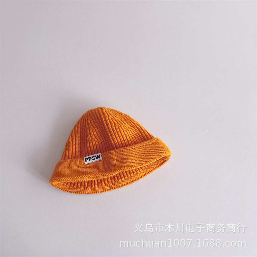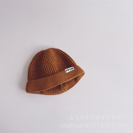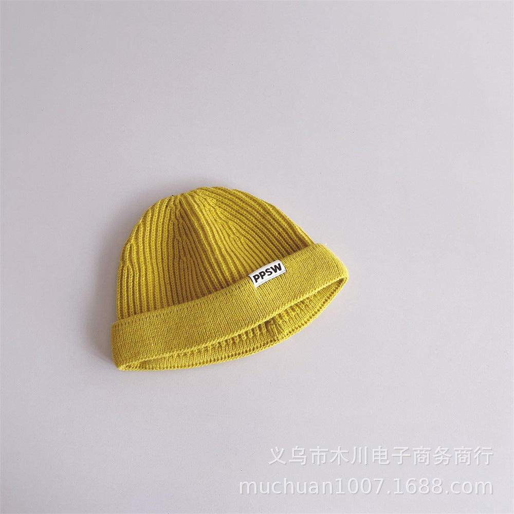 Kids’ Japanese-Style Knitted Melon Hat – Solid Color Wool Dome Beanie