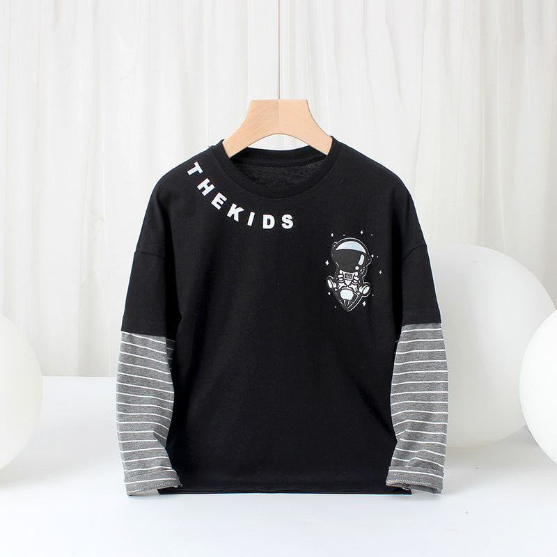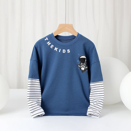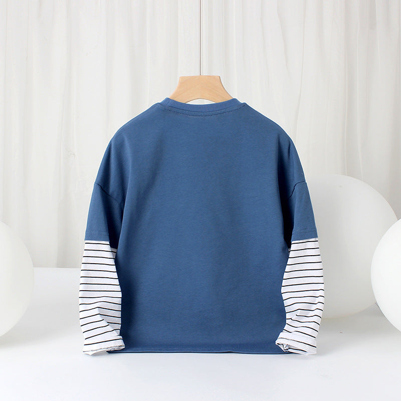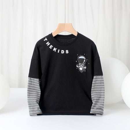 Give your child a stylish edge this season with our Korean-style long-sleeved fake two-piece T-shirt! 🍂👦 Perfect for spring and autumn in Nepal, this crewneck base shirt features a trendy layered design without the bulk – comfort meets cool!