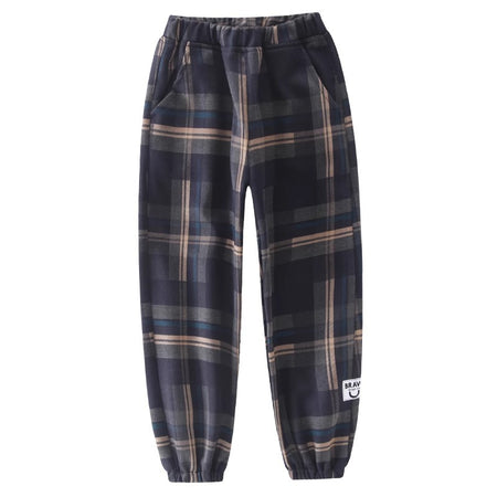 Kids' Plaid Sweatpants Spring Autumn Fleece-Lined Pants