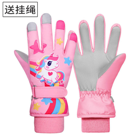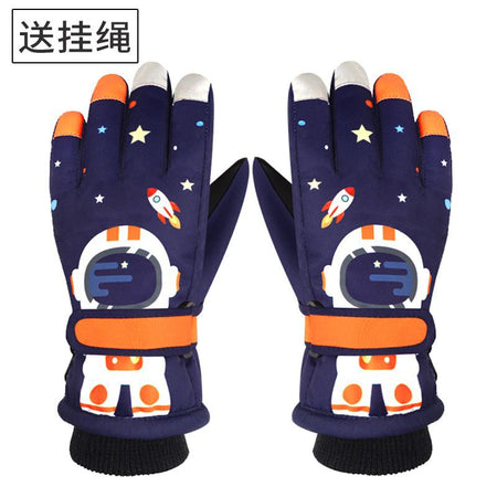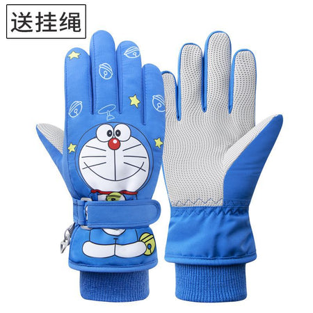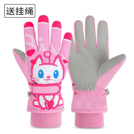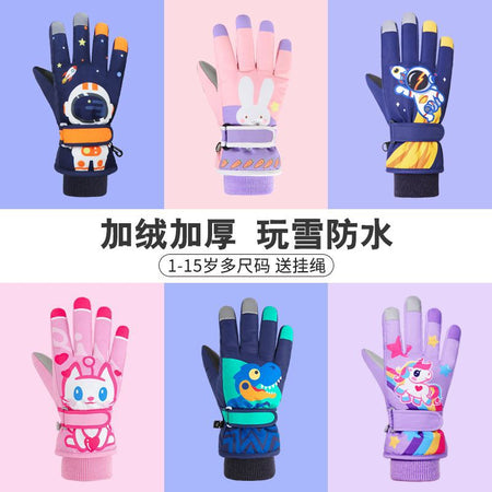 Kids Ski Gloves Waterproof Warm Fleece-Lined Cartoon Gloves