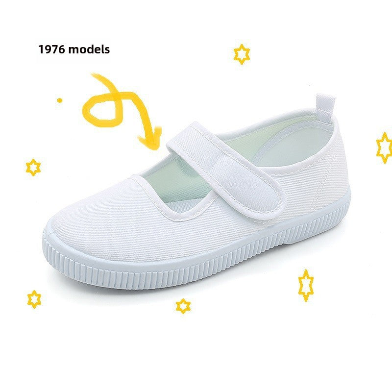 Made with breathable white cloth material, they’re ideal for indoor use – whether it’s classroom time, dance practice, or indoor play sessions 💃🕺. The non-slip sole offers stability and safety, while the soft insole keeps little feet happy all day long.