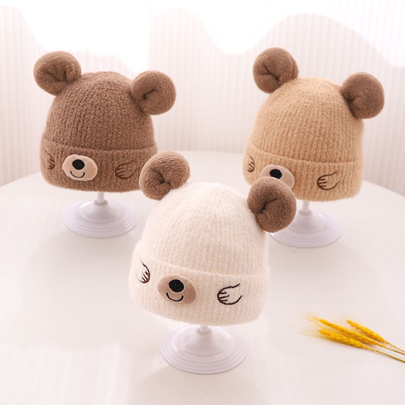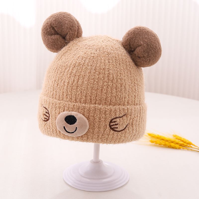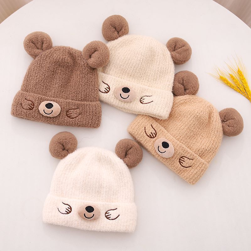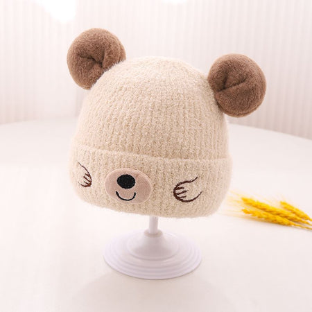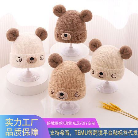 Korean Bear Ear Knitted Hat – Winter Warm Wool Hat for Kids