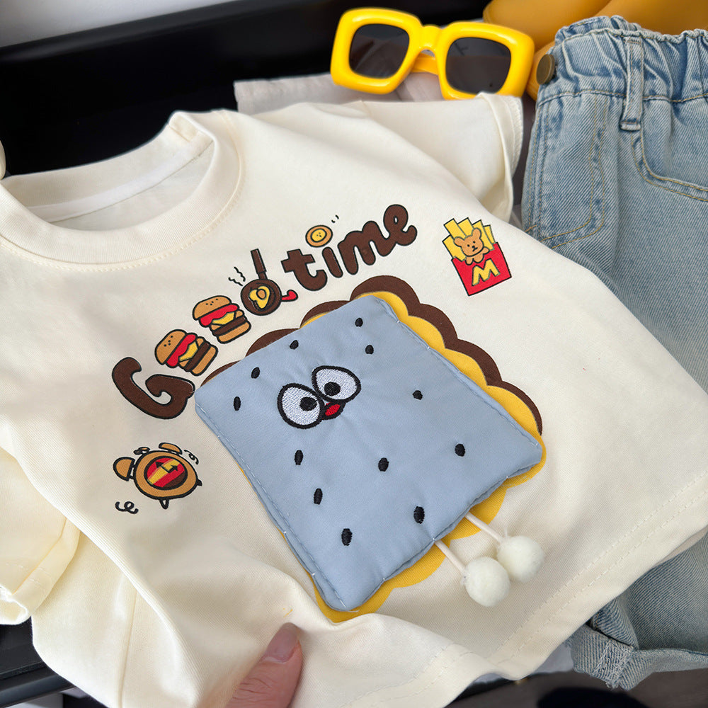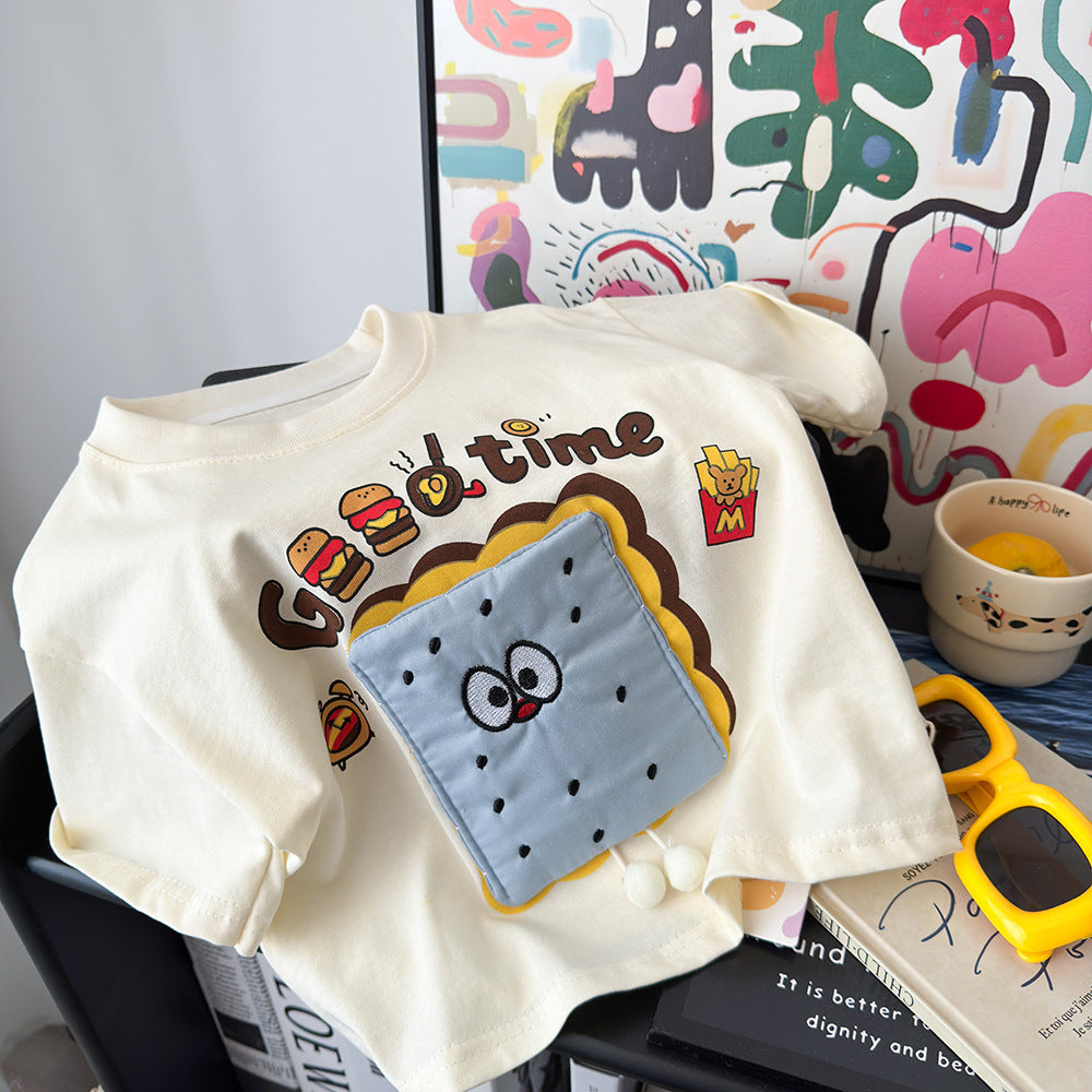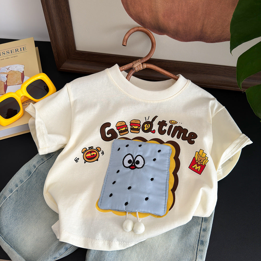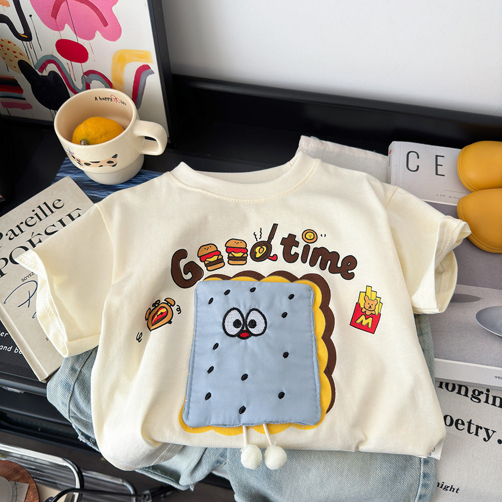 This short-sleeved T-shirt is perfect for pairing with shorts, skirts, or casual pants, giving children freedom of movement while staying stylish. The durable cotton fabric ensures long-lasting wear, keeping kids comfortable and cute during all their summer adventures.