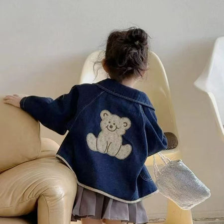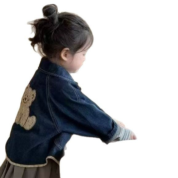 Kids Cartoon Bear Embroidery Denim Coat 2025 Spring Top
