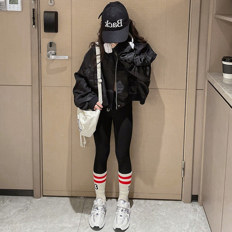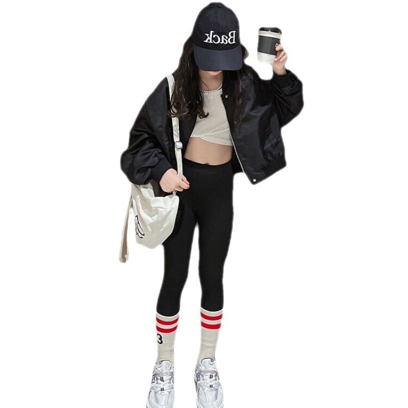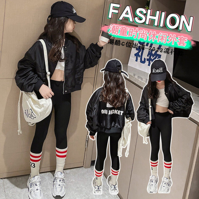 Girls Korean Style Pilot Jacket Kids Autumn Zipper Coat