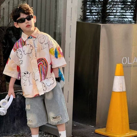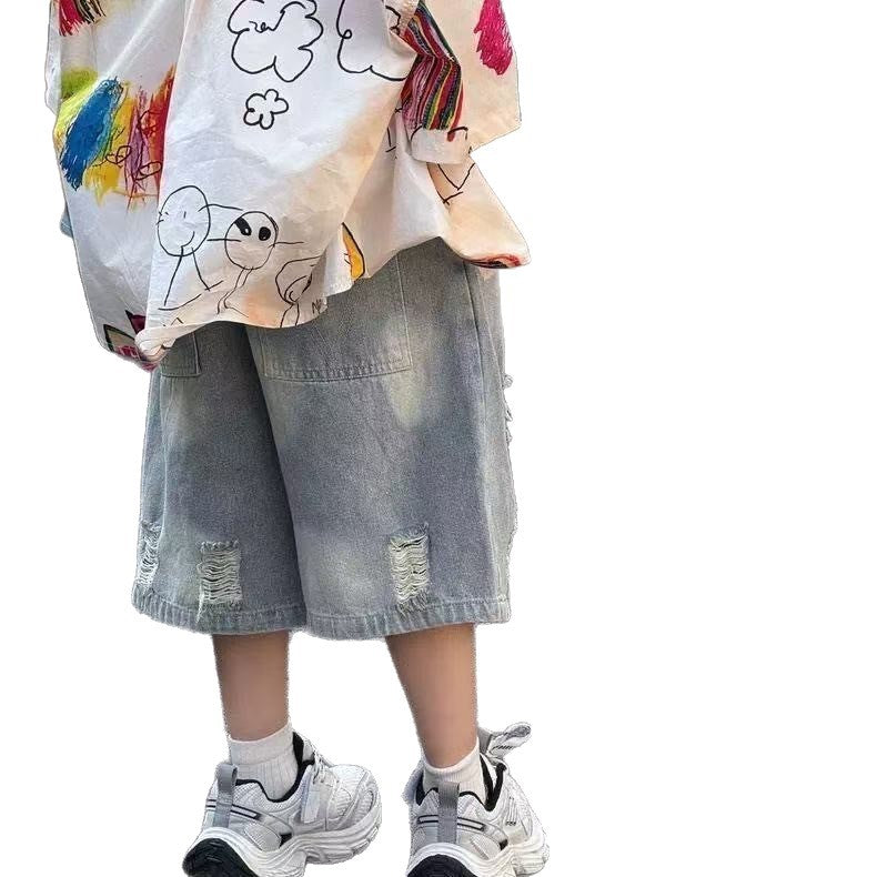 Korean Style Boys Loose Ripped Denim Shorts Summer Kids Wear