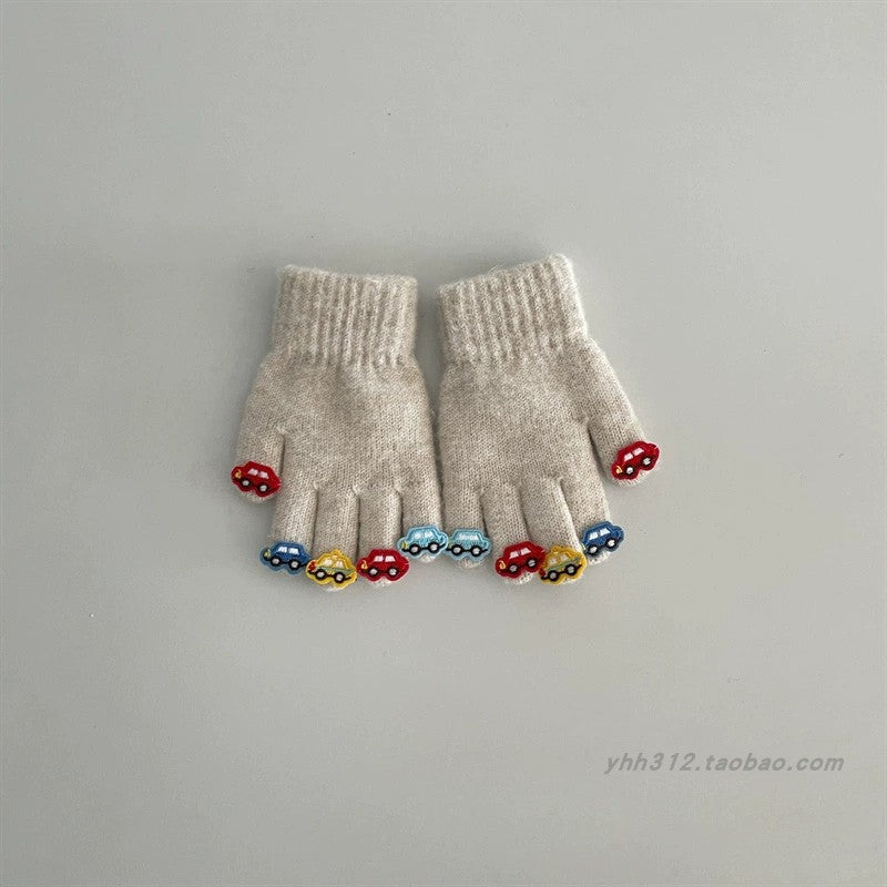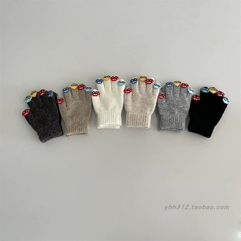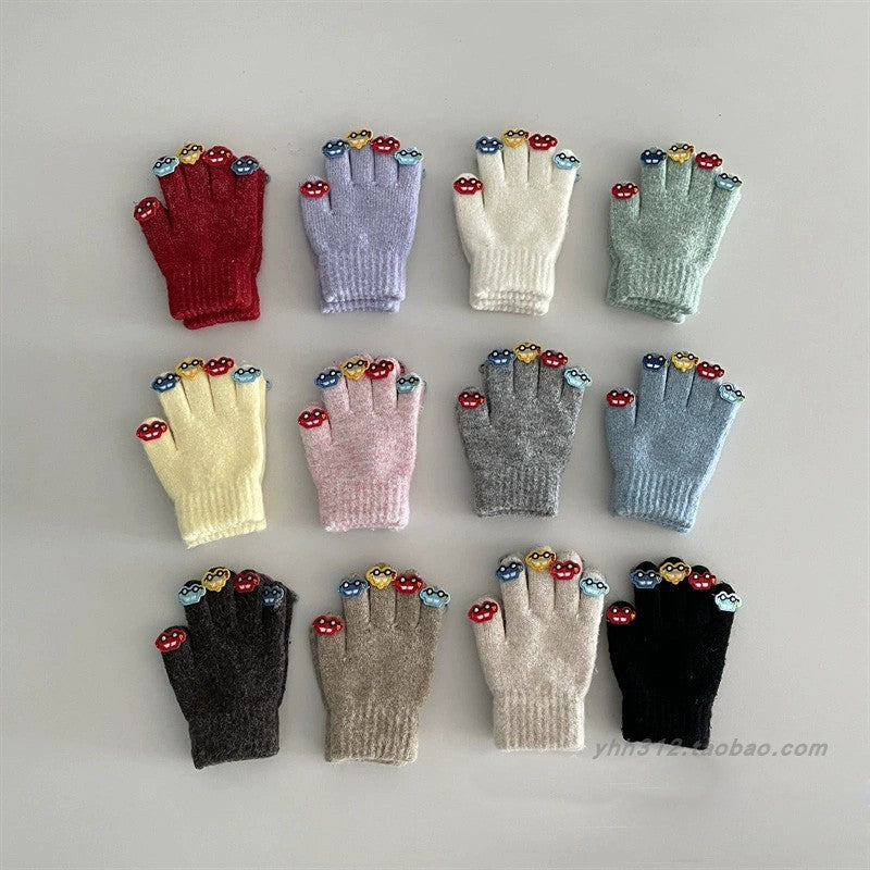 Korean Style Cartoon Knitted Finger Gloves for Kids