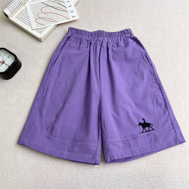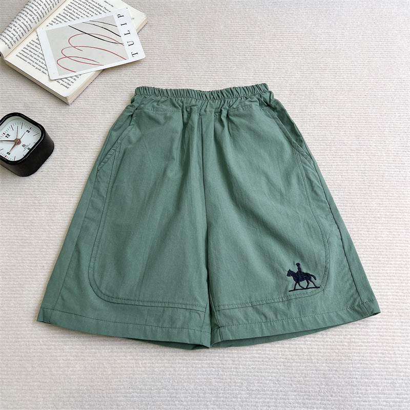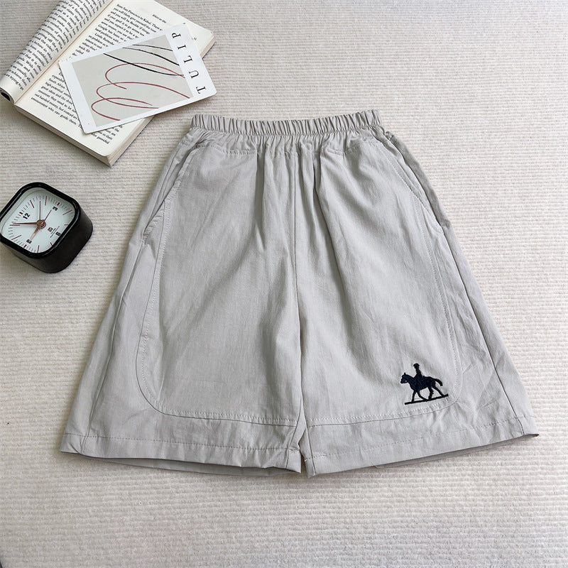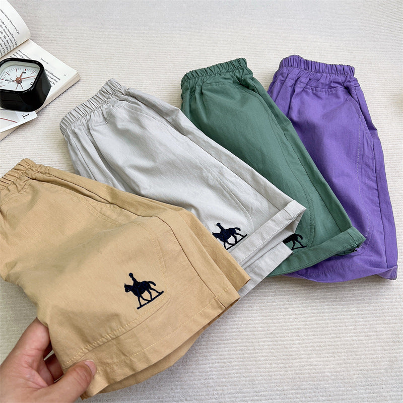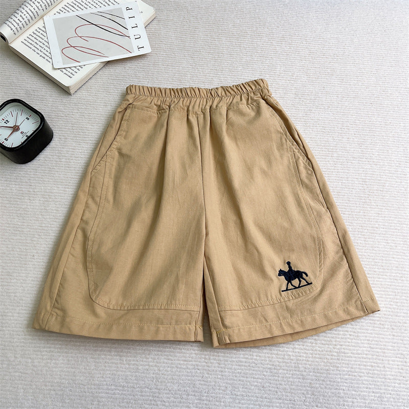 Korean Style Cotton Embroidered Boys Summer Loose Shorts