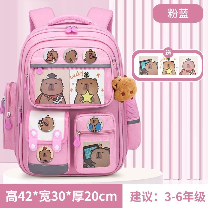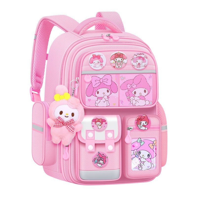 The cartoon-inspired design adds a playful charm, making it a favorite among young girls. With its large-capacity interior, students can easily organize books, notebooks, stationery, and lunch boxes while staying comfortable all day.
