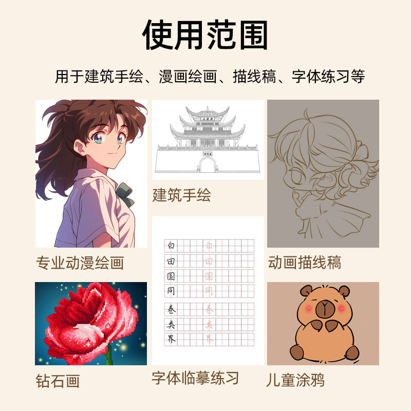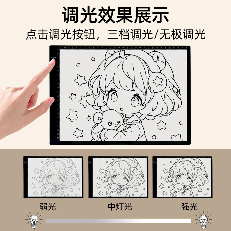 The ultra-slim, lightweight design makes it easy to carry and store 👜📁. Its adjustable LED backlight lets you control the brightness for different environments, offering eye protection during long hours of use 👀✨. Whether you're copying manga frames, practicing lettering, or designing product prototypes, this luminous board ensures accuracy and clarity every time 🎨📐.