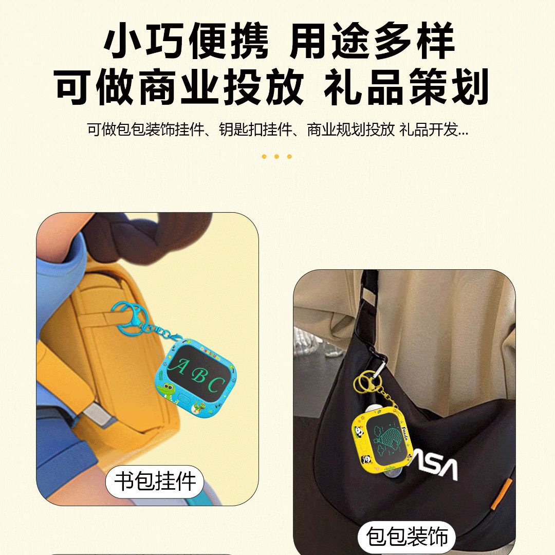 Featuring a bright, eye-friendly LCD screen π and a one-click erase button π, kids can easily create and erase artwork anytime, anywhere. Lightweight and durable, it fits perfectly as a cute pendant or bag accessory πβ¨.