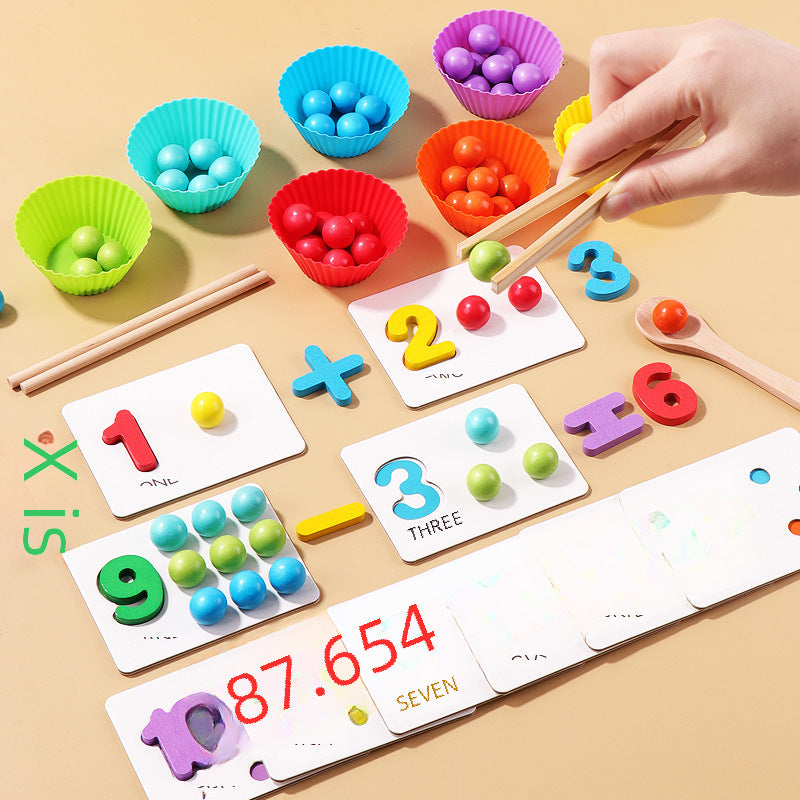 Each set includes colorful beads, number cards, and matching tools to help children learn counting, sorting, and basic math through hands-on play. The clip-bead activity also improves hand strength and concentration, making it perfect for toddlers and preschoolers 👶🎨
