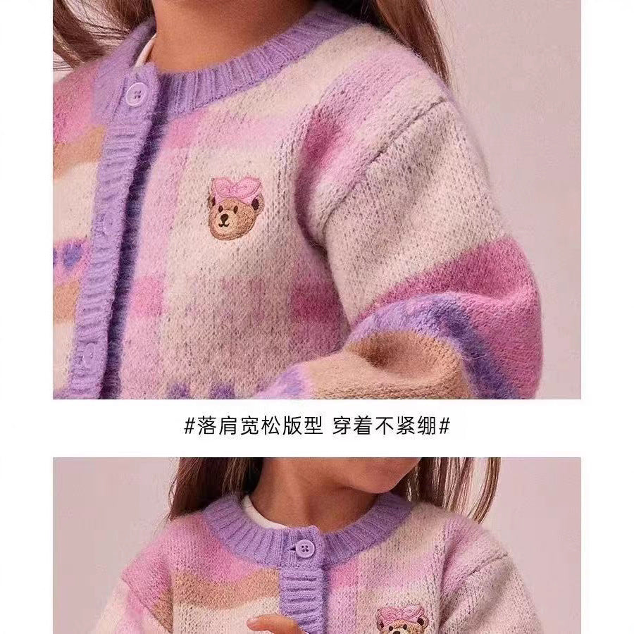 Girls’ Jacquard Wool Cardigan Cute Korean Autumn Winter