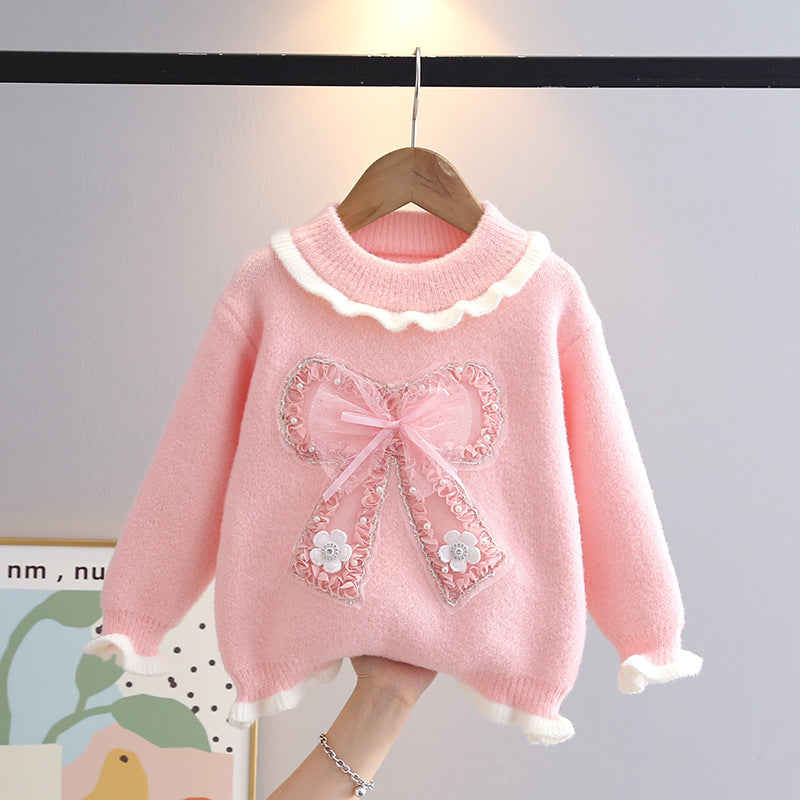 Girls’ Lace Sweater – Autumn Winter Stylish Knitwear