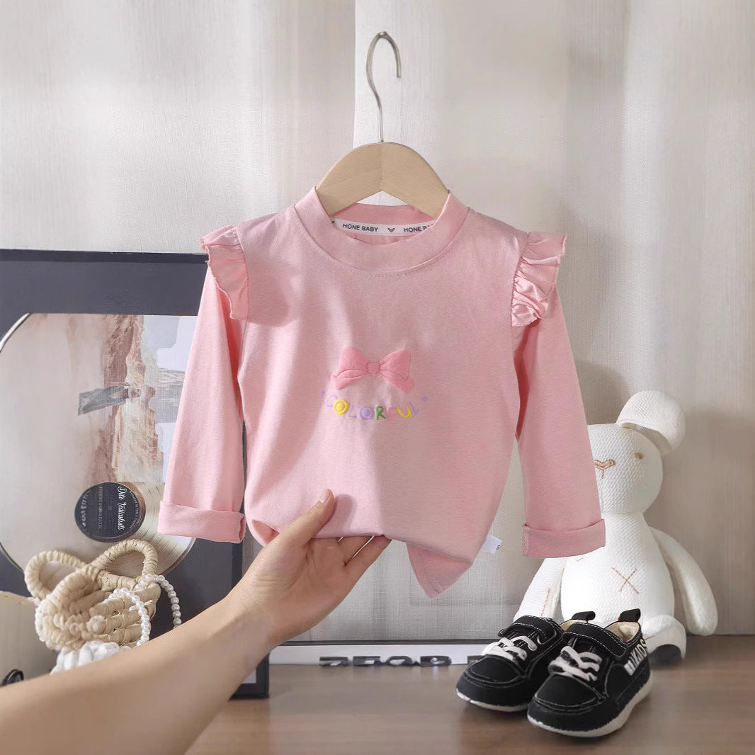 Add charm to your little one’s wardrobe with this girls’ ruffled long-sleeve T-shirt 👧💖. Made of pure cotton, it’s perfect for spring and autumn wear, keeping your child cozy while looking trendy.