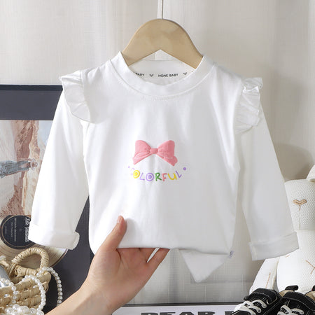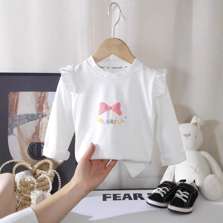 Girls Ruffled Cotton Long Sleeve T-Shirt Spring Top