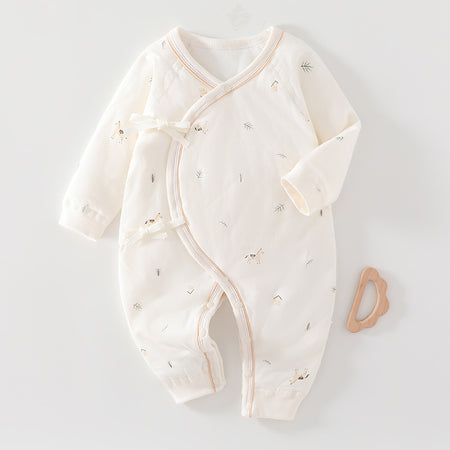 Designed with comfort in mind, this newborn baby clothes piece balances breathability and warmth. The 60g cotton weight keeps the garment lightweight while still offering insulation for cooler seasons. As autumn and winter baby clothes, it supports consistent comfort throughout the day and night. 🍂❄️