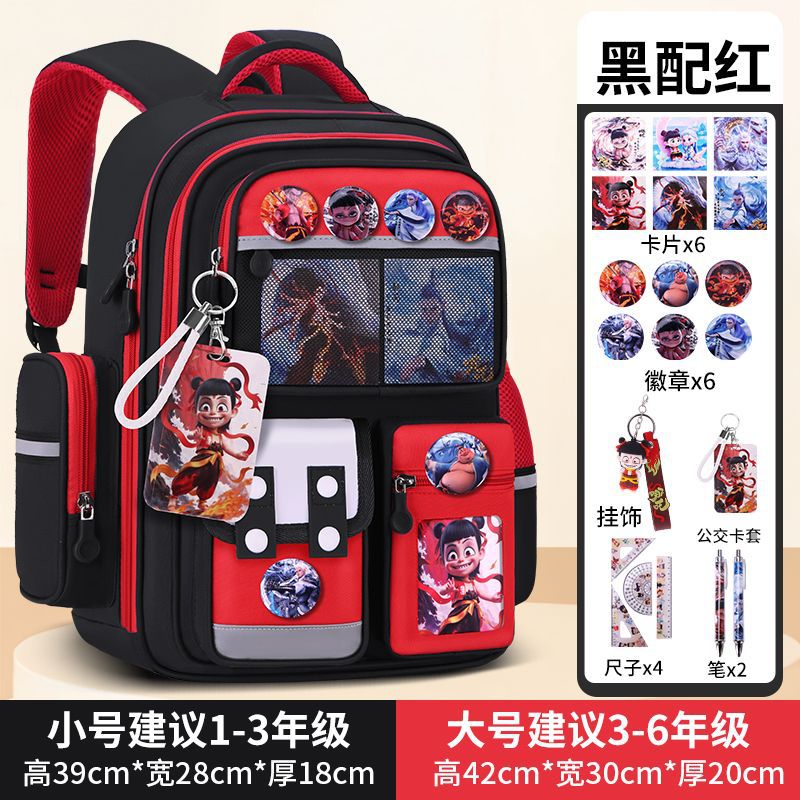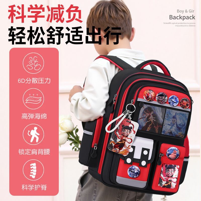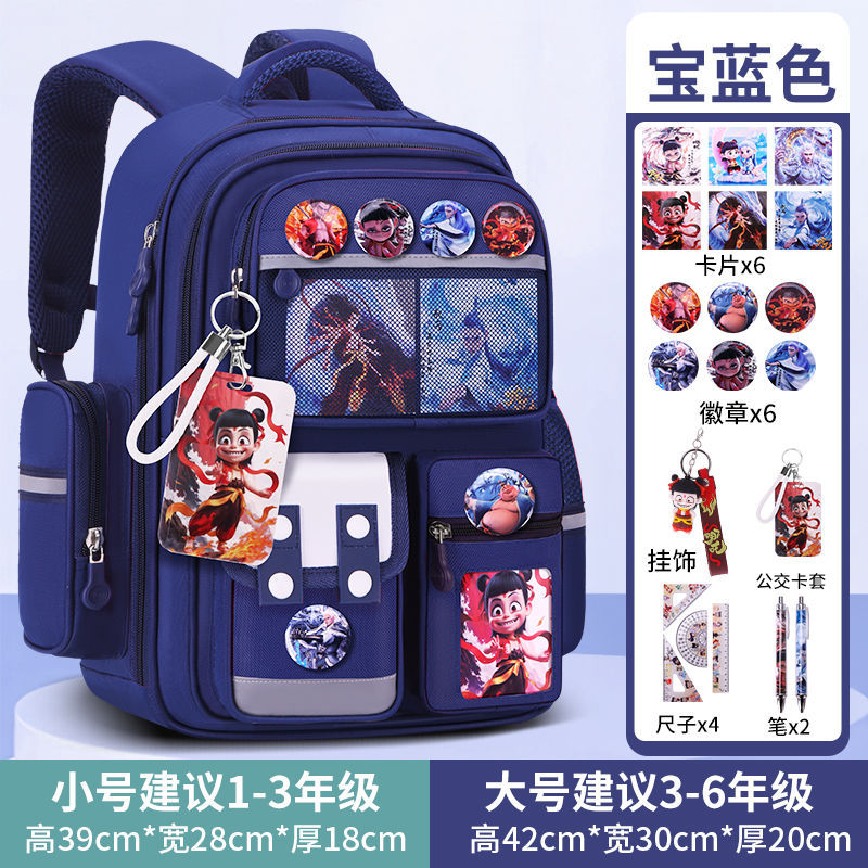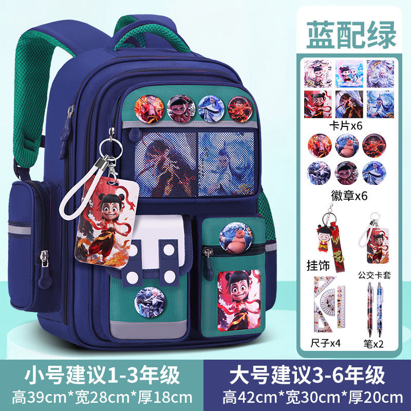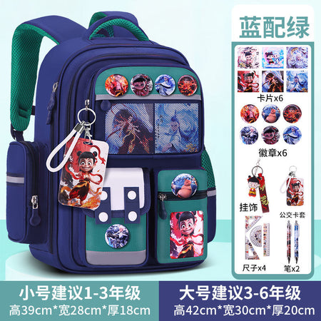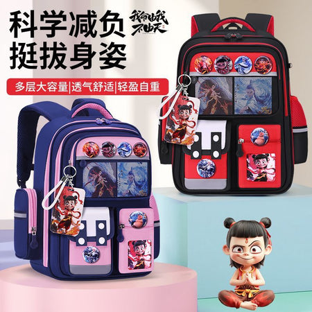 🎒 Make school comfortable and organized with the Nezha Aobi New Schoolbag. Designed for primary school students in grades 1–6, this backpack combines ergonomic spine protection with large-capacity storage to keep books, stationery, and essentials neatly arranged.