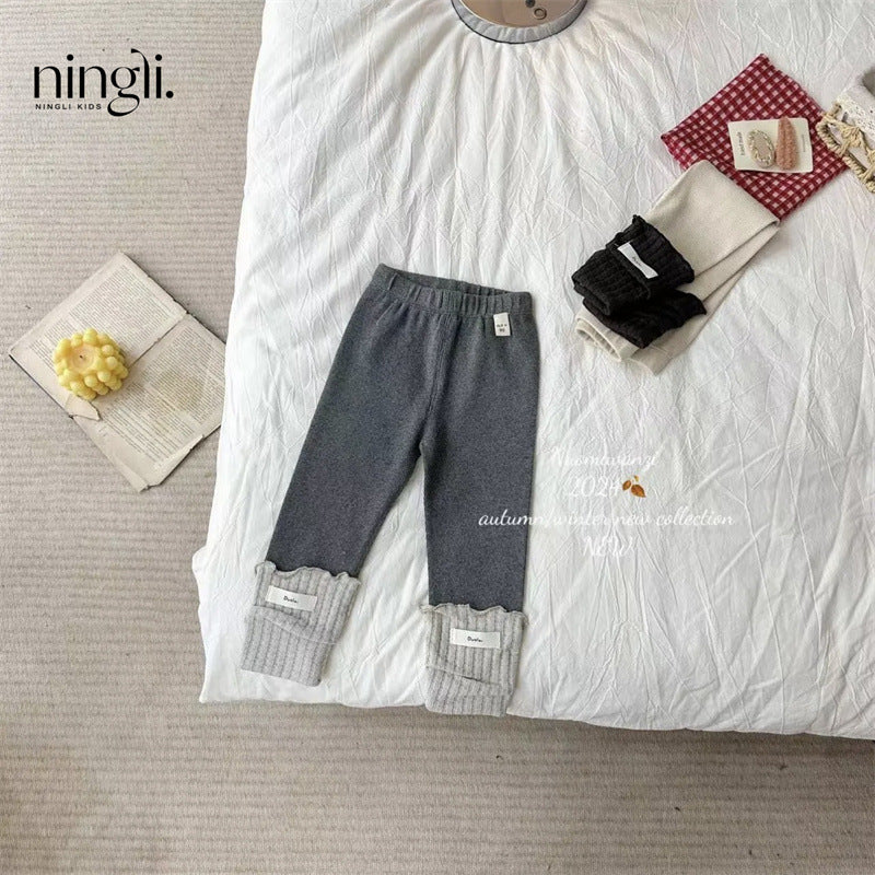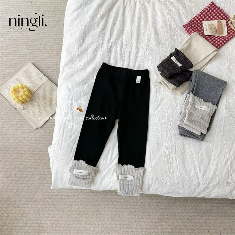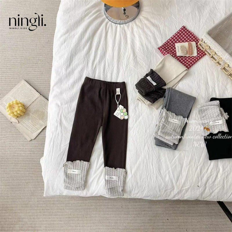 Girls’ Color-Block Leggings – Autumn Stylish Elastic Pants
