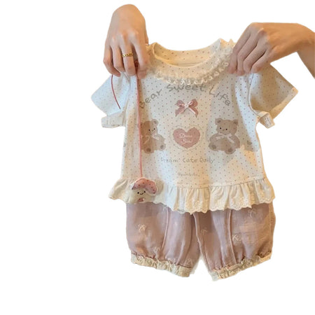 🧵 Soft stitching and a flexible elastic waistband provide a snug yet gentle fit, ideal for sensitive skin and busy toddlers who love to explore and learn 🧸📚. The set’s charming design is perfect for kindergarten, casual outings, or family gatherings.