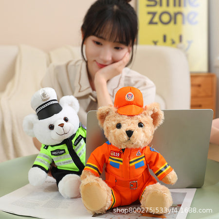 Police Fire Bear Plush Toy Teddy Doll for Kids Gift Cute Soft