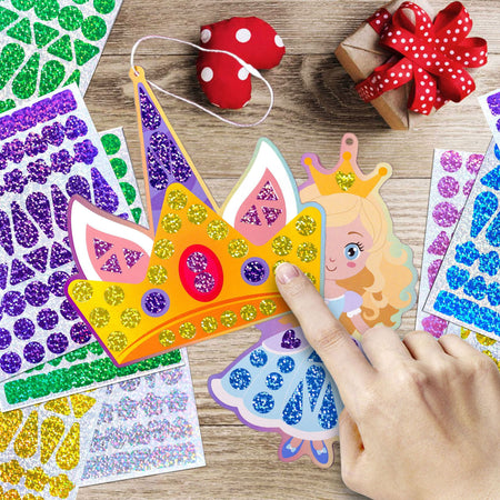 This hands-on craft encourages fine motor skills, imagination, and color recognition as children stick and color their way to beautiful artworks. The dazzling mirror effect adds a royal touch to every masterpiece! 🌟🖌️