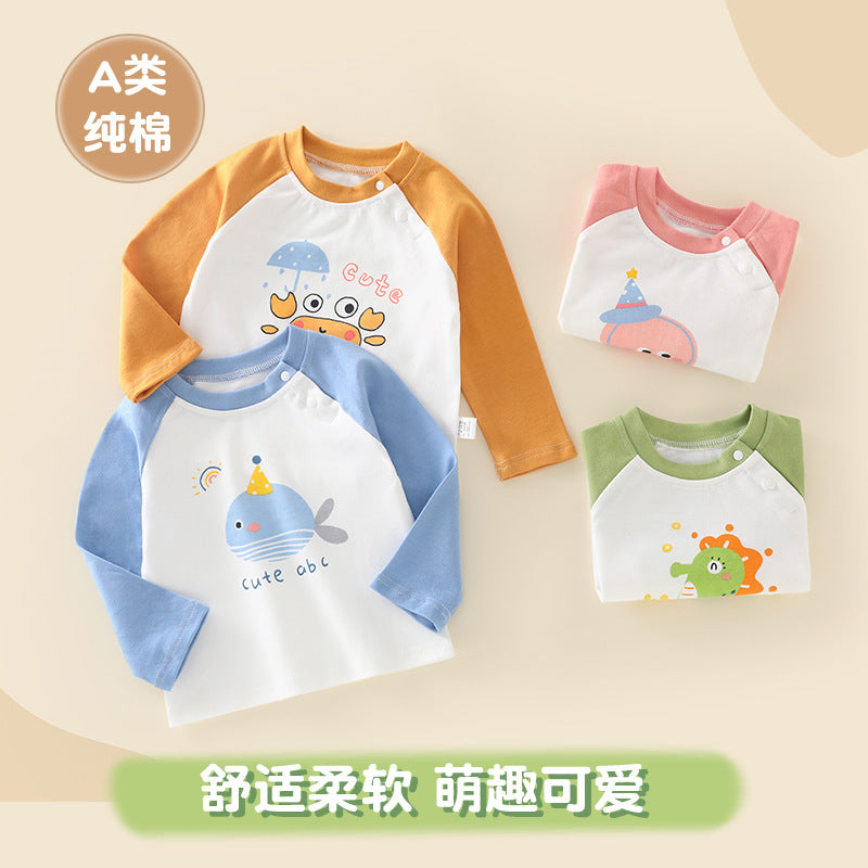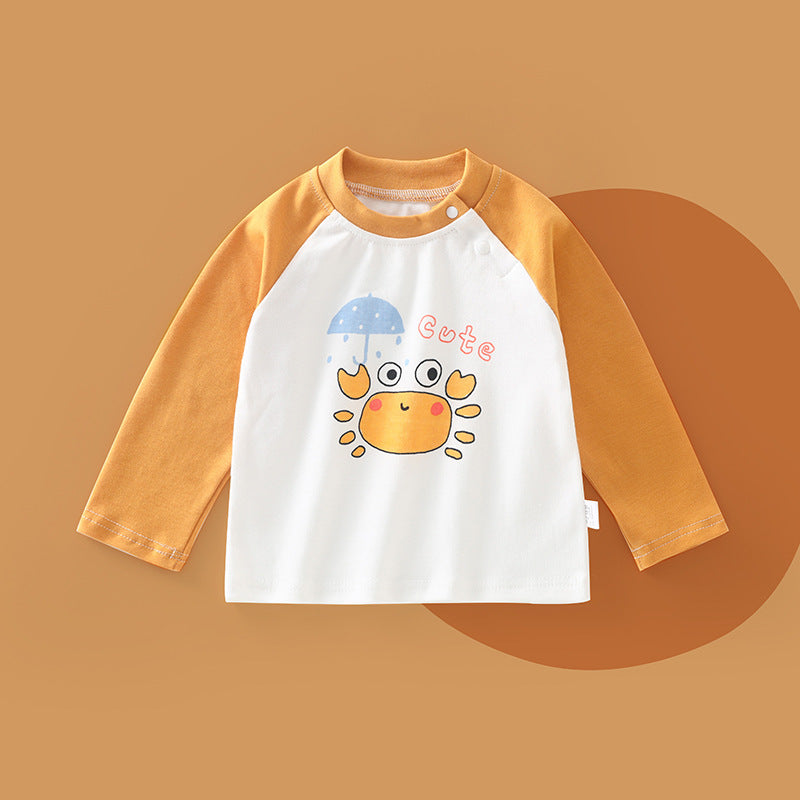 Pure cotton kidsren's spring & fall long-sleeved T-shirts are designed for comfortable everyday wear during changing seasons 🍃. This versatile top works well as boys' autum tops and as boys' and girls' bottoming shirts for daily use.
