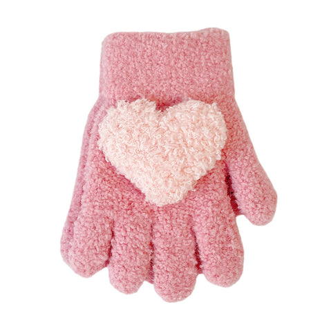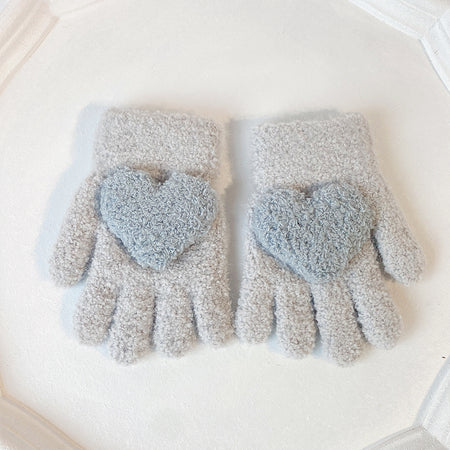 Kids’ Solid Color Love Full-Finger Winter Gloves