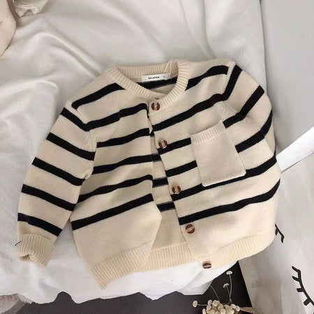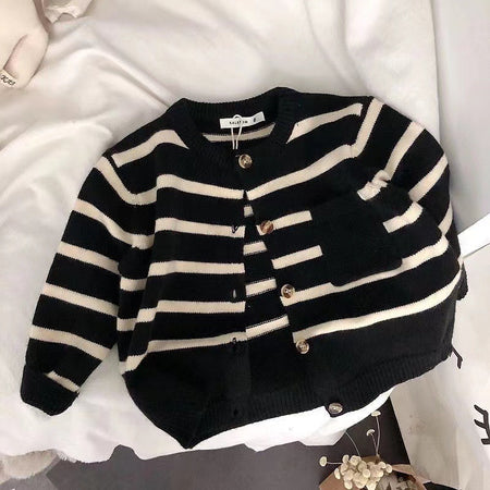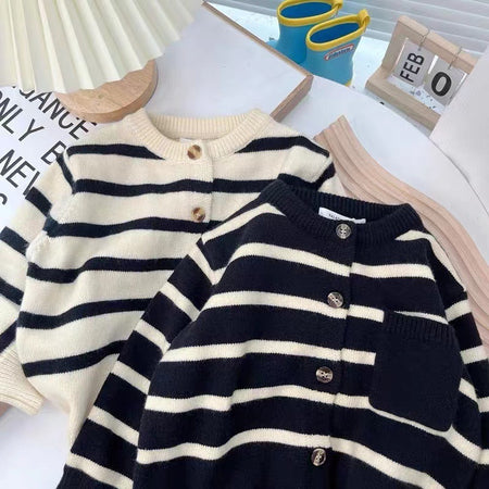 Kids’ Striped Knit Cardigan – Soft Korean Style Sweater Jacket