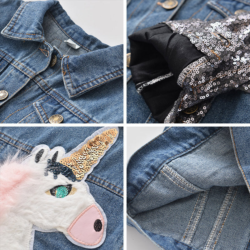 Girls Unicorn Sequin Denim Jacket 2025 Spring Autumn Top