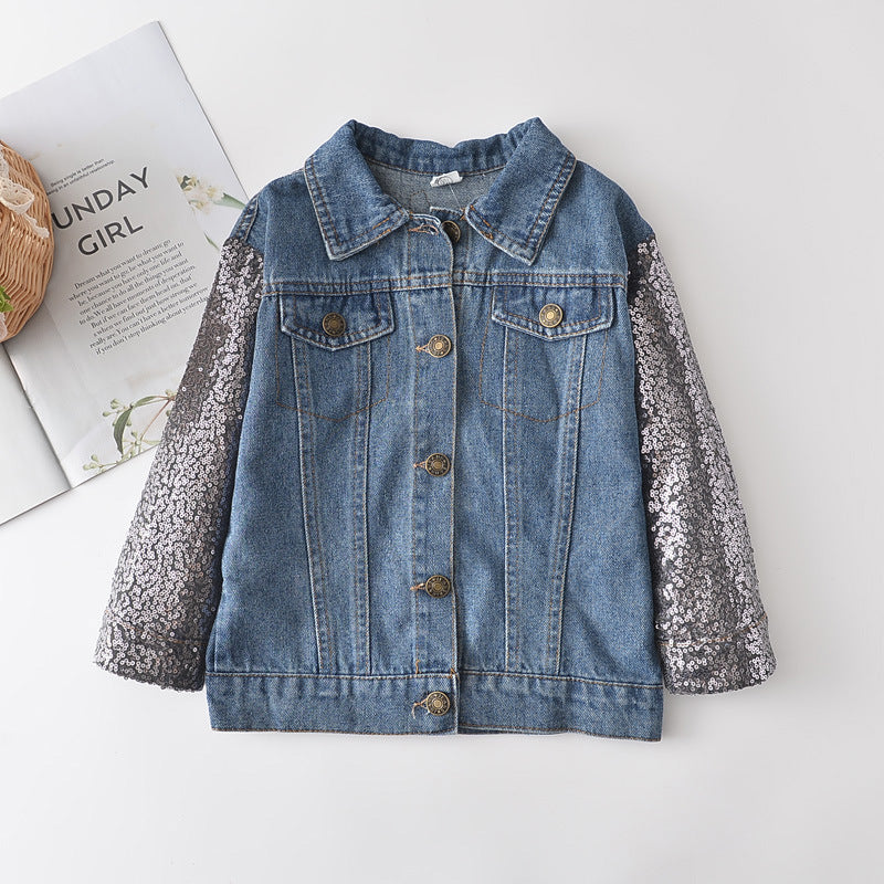Let your little girl shine with this sparkly unicorn sequin denim jacket, perfect for spring and autumn fashion. Cute, comfortable, and magical—this jacket is made for little trendsetters. 🦄✨