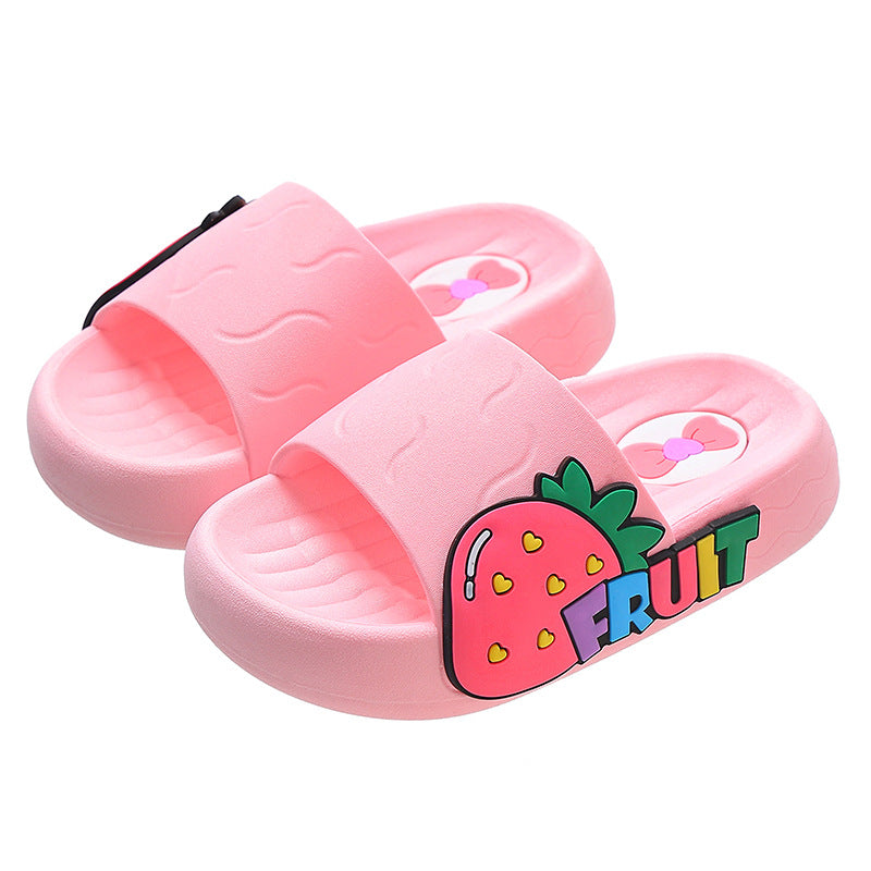 Designed with a soft sole and non-slip bottom, they help keep your child safe on slippery floors while offering cozy support for daily wear. The strawberry-themed cartoon design is bright, playful, and perfect for girls who love fun and fashion! 🎀🩴