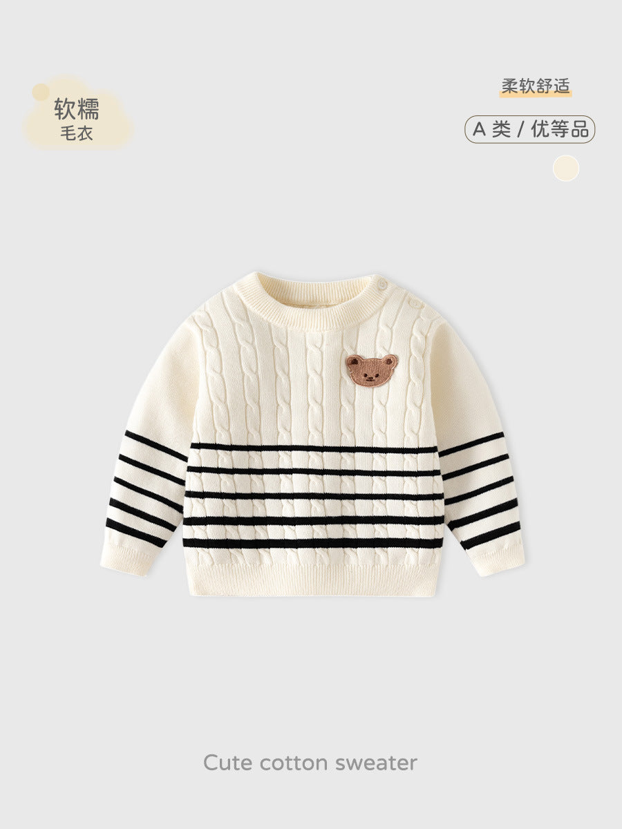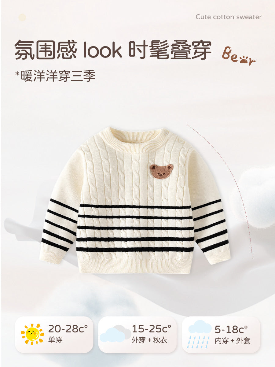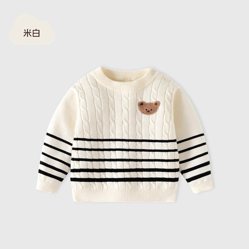 This handsome children's sweater pairs effortlessly with pants, jeans, or skirts, making it a versatile baby top for casual outings, family gatherings, or daily wear. The refined striped pattern and twist knit details create a polished look while maintaining cozy comfort throughout the colder seasons 🍁❄️.