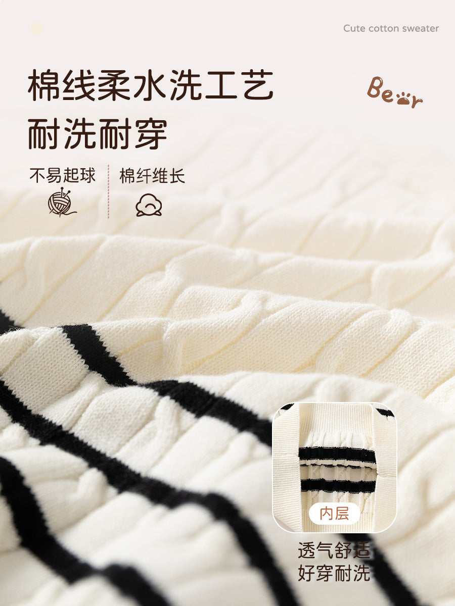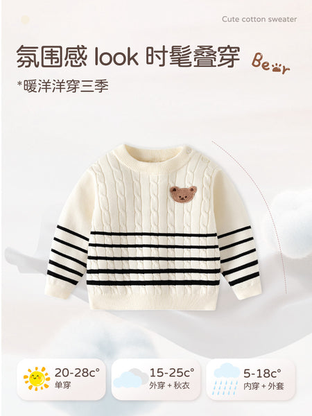 Striped Twist Knit Korean Style Pure Cotton Baby Sweater 2025