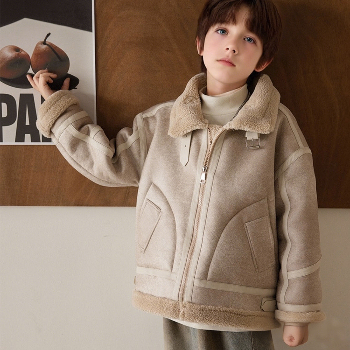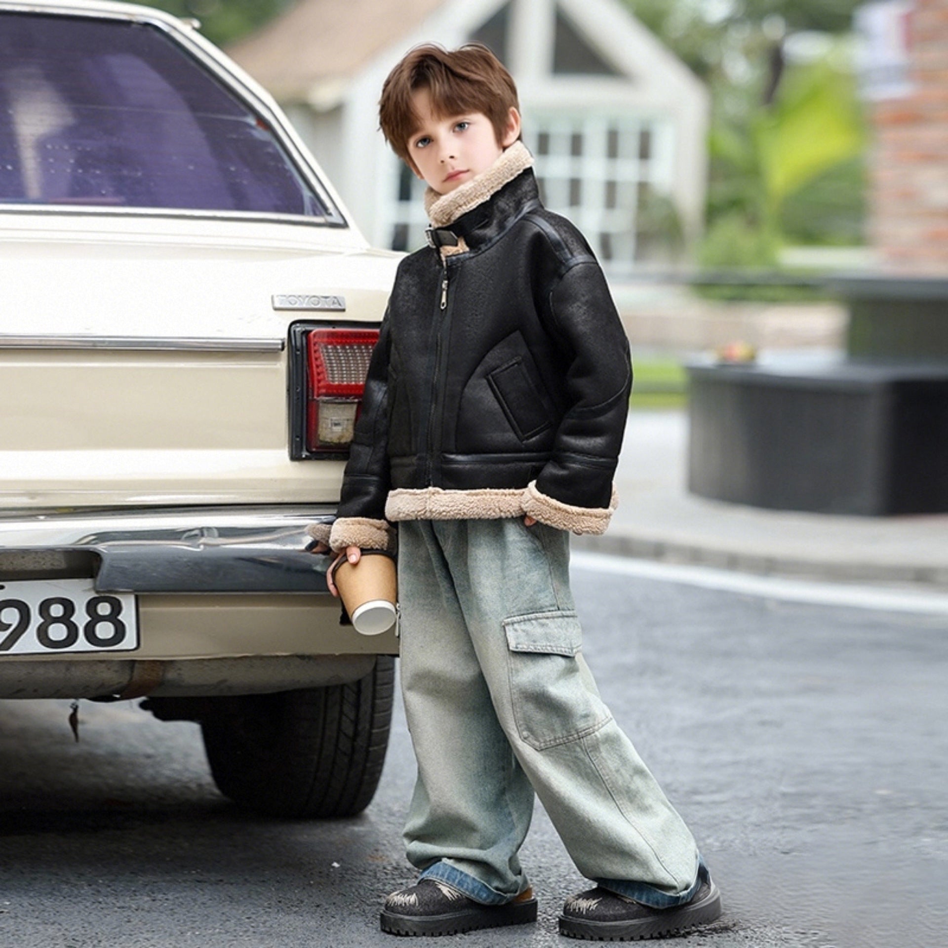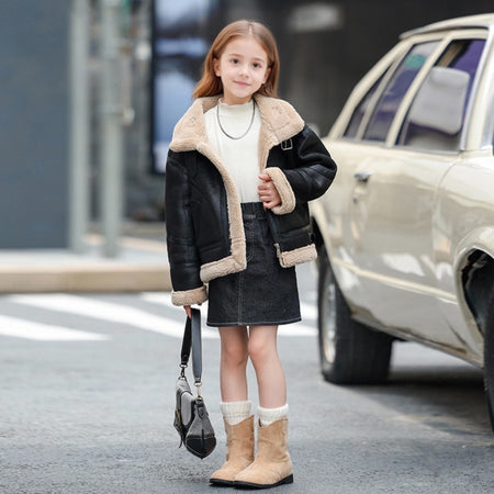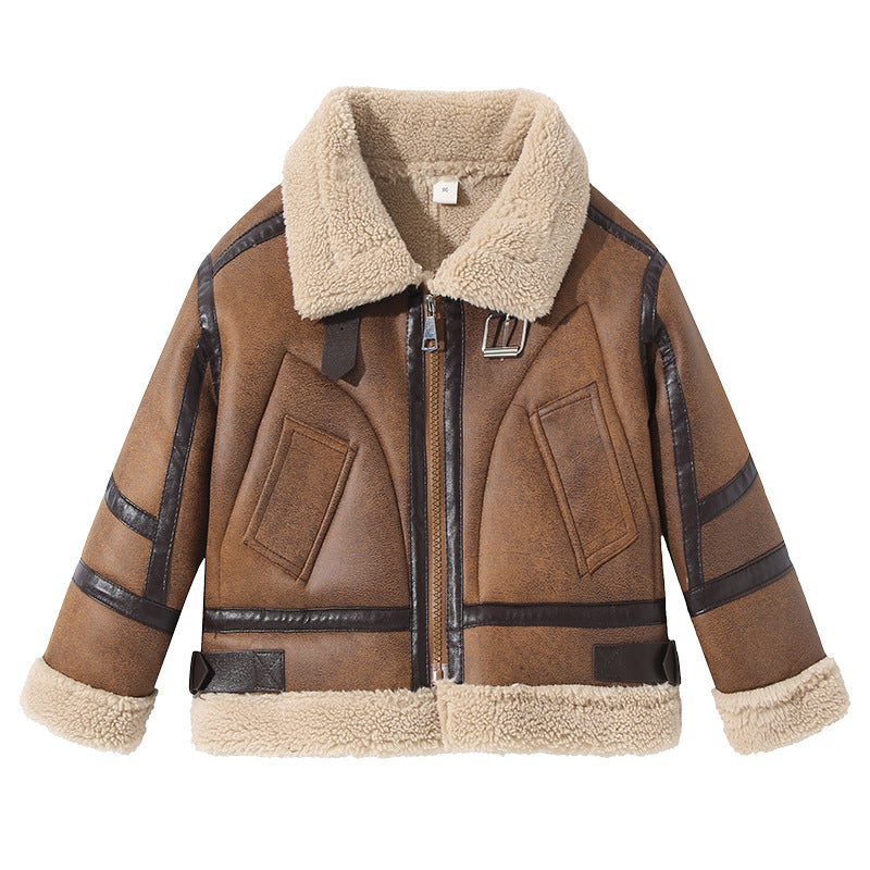 Kids’ Suede Leather Jacket – Autumn & Winter Unisex Coat