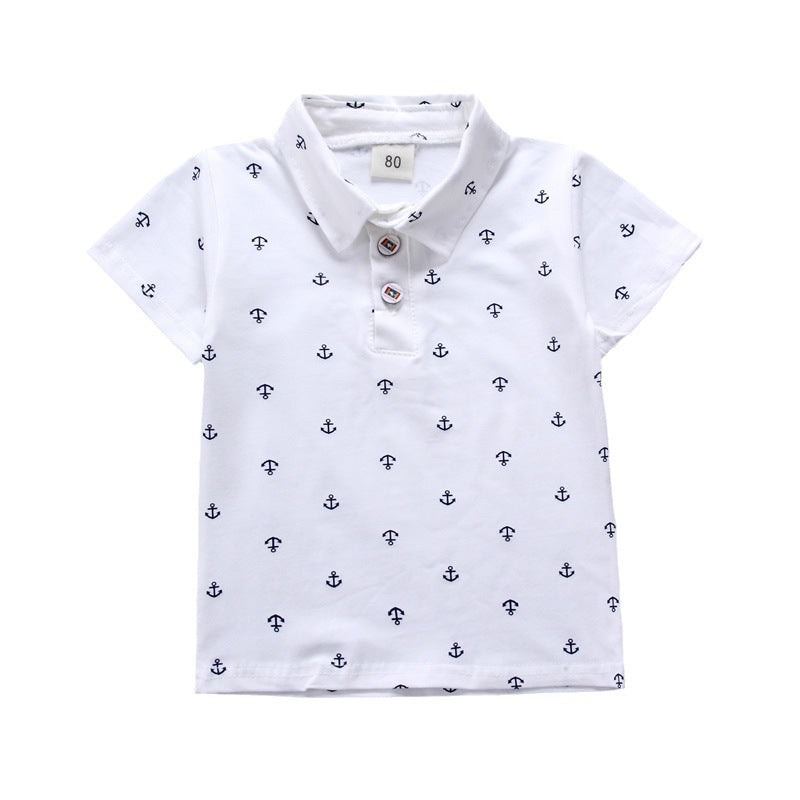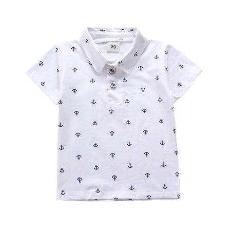 Summer Cotton Polo T-Shirt Boys Small Floral Anchor Top