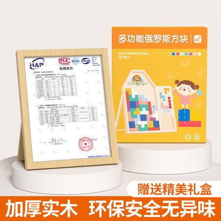 Made from safe, eco-friendly wooden pieces, the puzzle features colorful blocks that fit together to build exciting shapes and patterns — just like the classic Tetris game! 🌈🎮