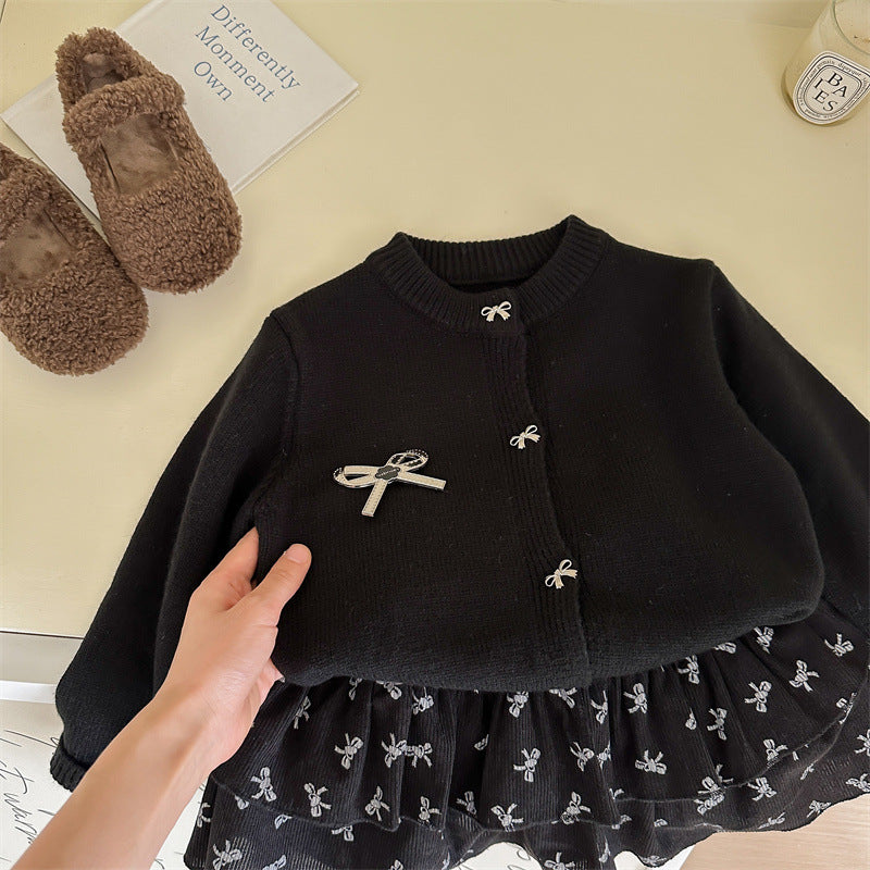 Girls’ Sweater Skirt Set – Korean Autumn Outfit