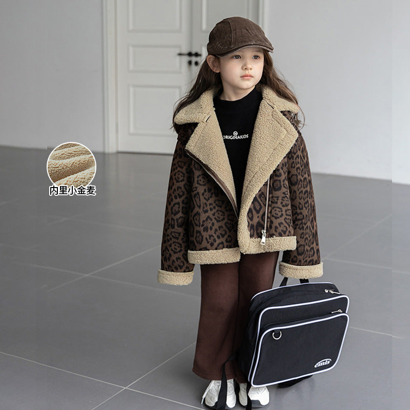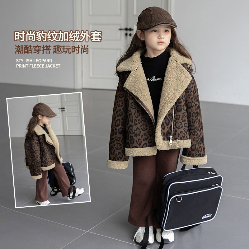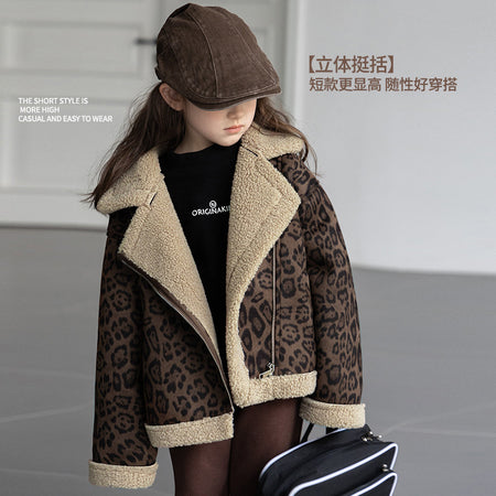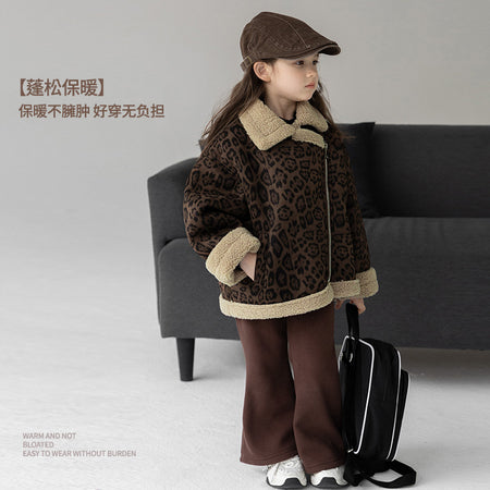 Add a touch of bold style to your child’s winter wardrobe with this girls’ leopard print fleece-lined jacket 🐆🧥. Perfect for autumn and winter, it features a thickened warm lining that keeps your little one cozy during chilly days while making a fashion statement.