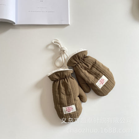 Vintage Korean Kids Lamb Wool Cotton Winter Gloves