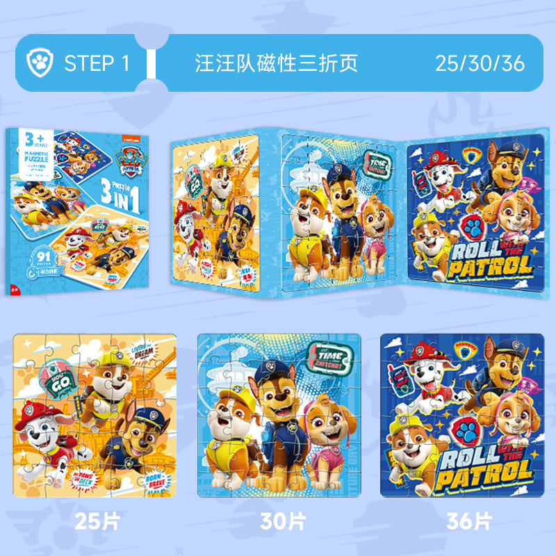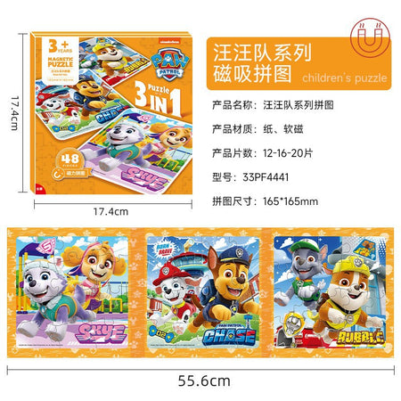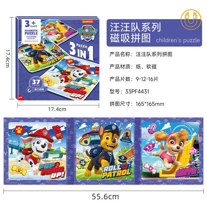 Featuring the adorable Wang Wang Team (Paw Patrol-style) characters, children can easily match and assemble the flat magnetic map pieces, building their problem-solving and coordination skills while enjoying their favorite cartoon friends! 🎨👧👦