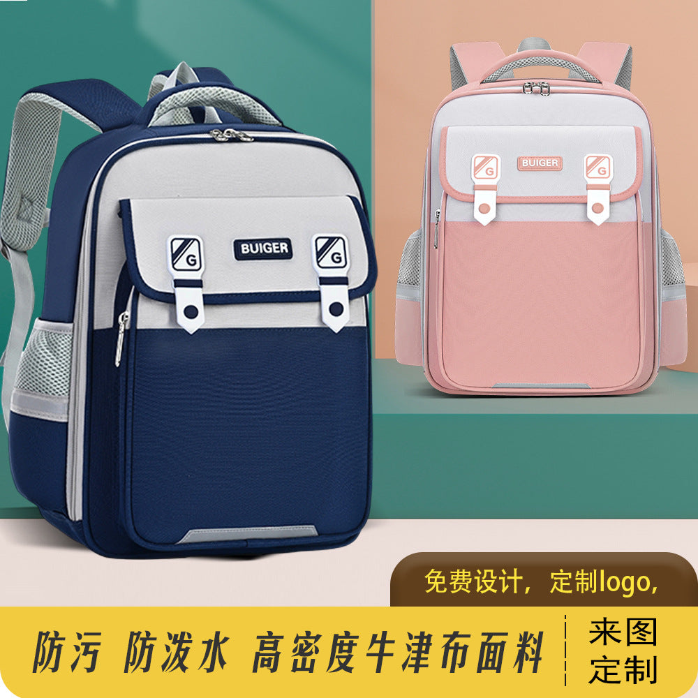 Waterproof Logo Printed School Backpack for Grades 1-6 Kids