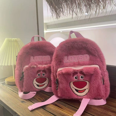 Winter Plush Kids Backpack β Cute Bear & Strawberry Design