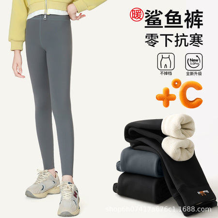 Women’s Plus Velvet Shark Pants – Autumn & Winter Sports Leggings