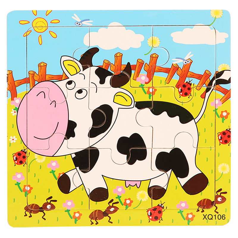 Wooden 9 Piece Flat Puzzle for Toddlers Early Learning Toy