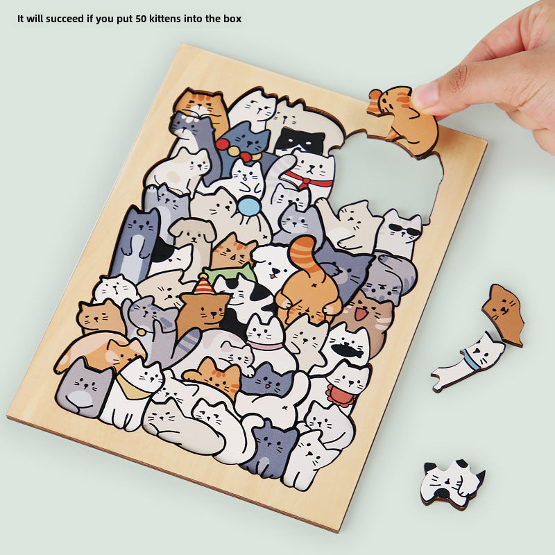 Wooden Animal Puzzle Toy – Cats, Dogs & Panda Fun