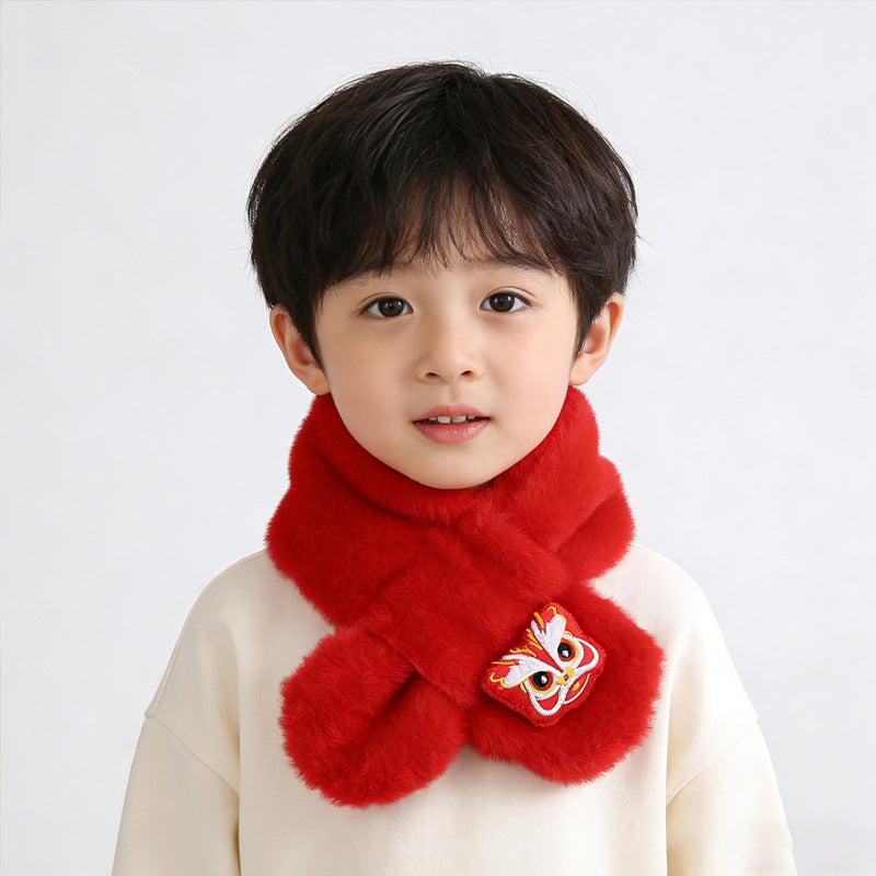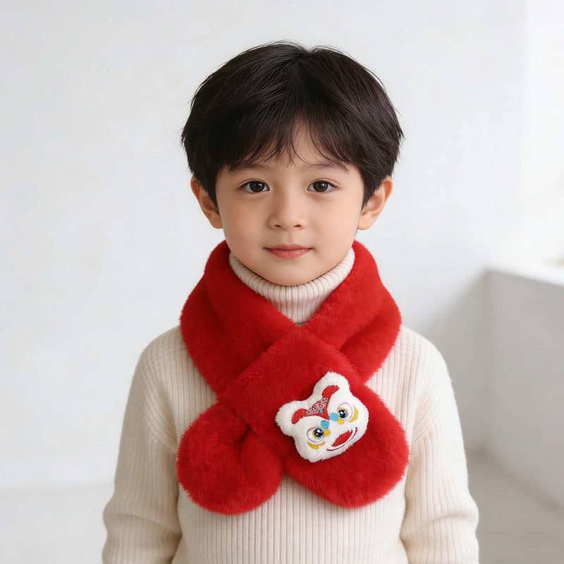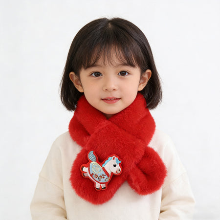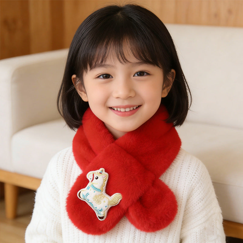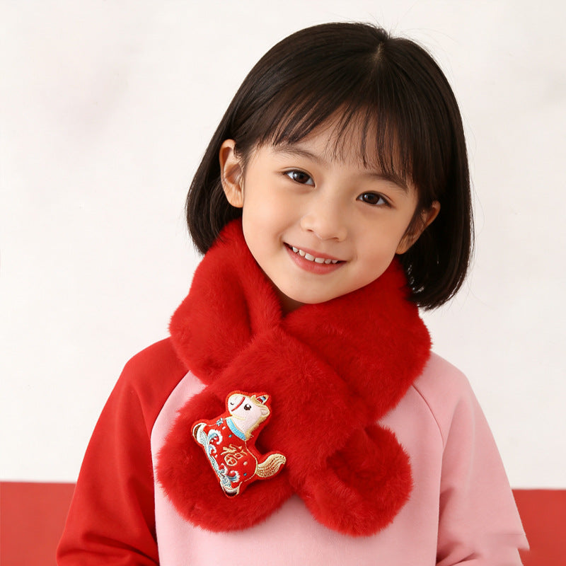 Year Horse Kids Red Plush Cartoon Scarf Korean Style Girl XL